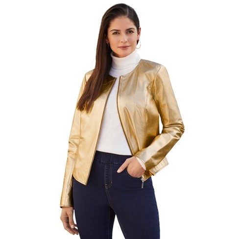 Gold faux 2025 leather jacket