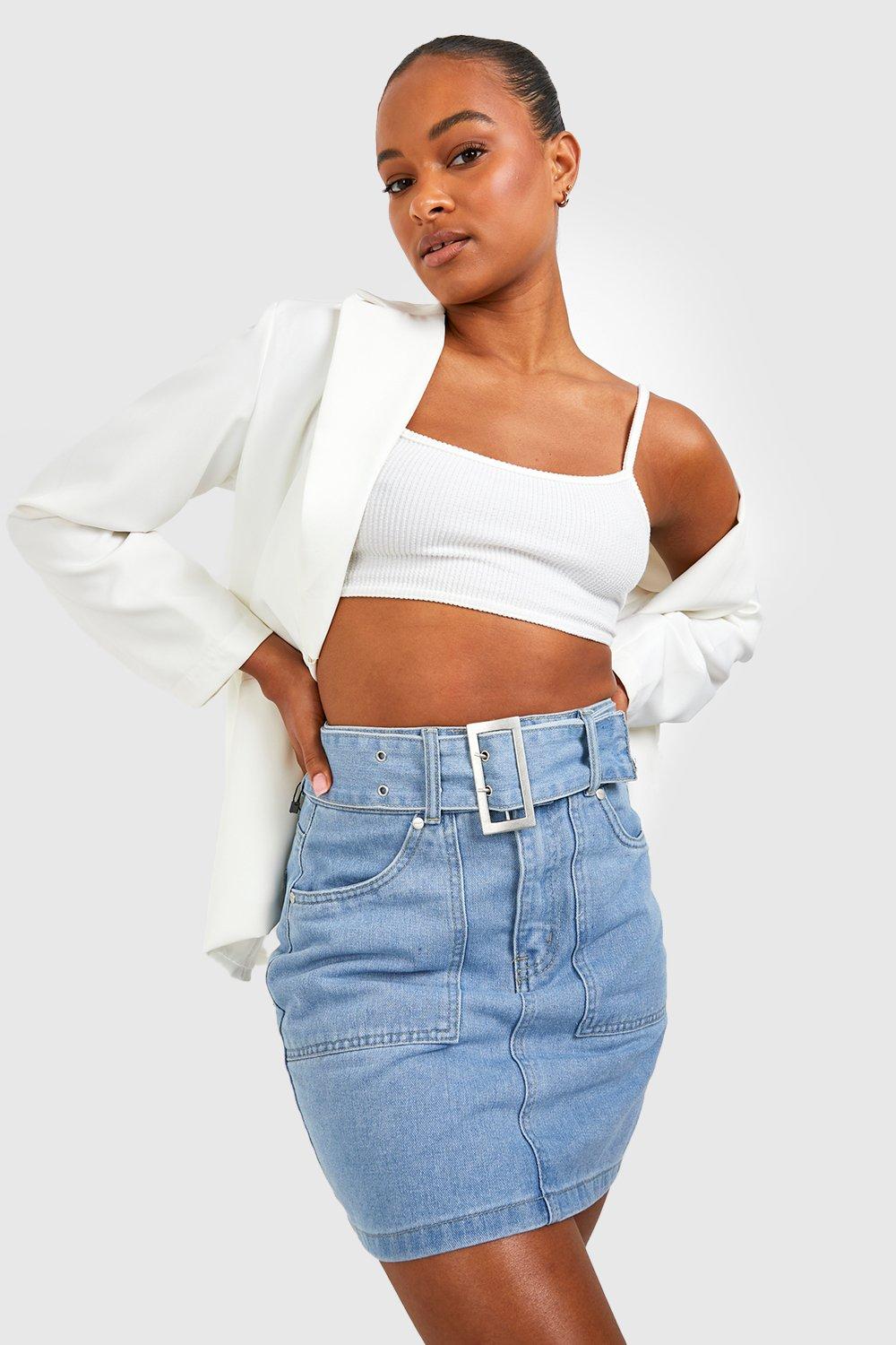Light wash 2025 belted denim skirt