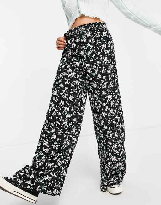 Black floral 2025 wide leg pants