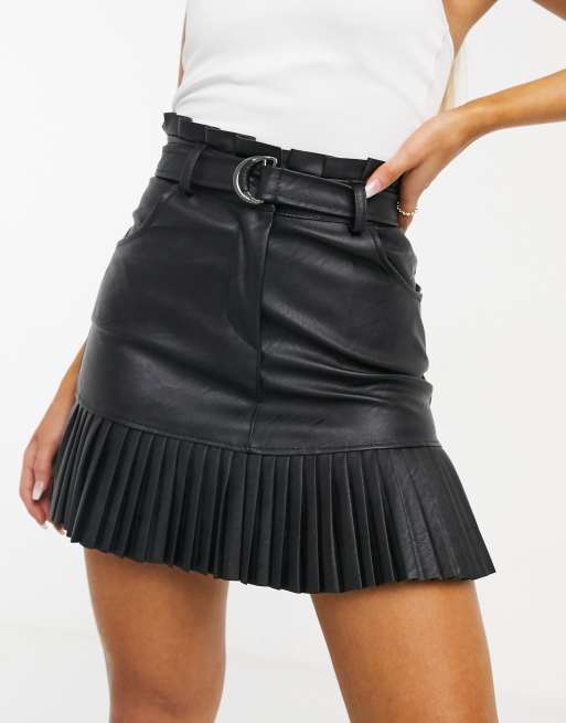 Black pu d-ring 2025 frill pleated mini skirt