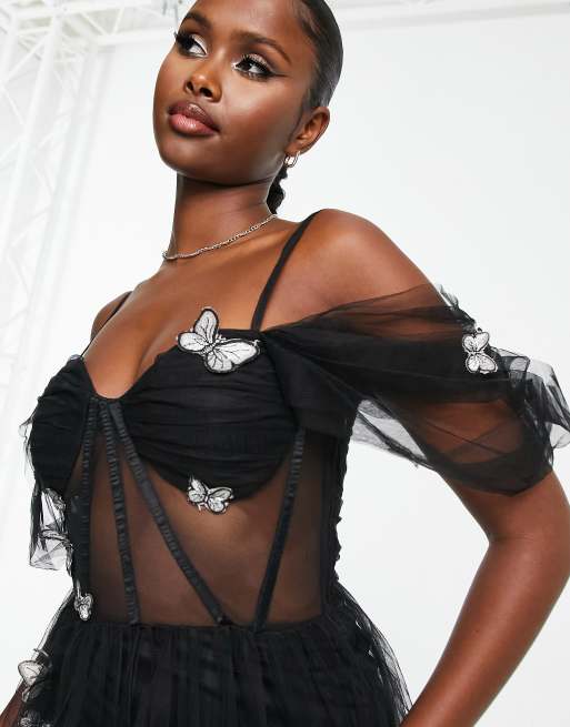 Black sheer 2025 embroidered dress