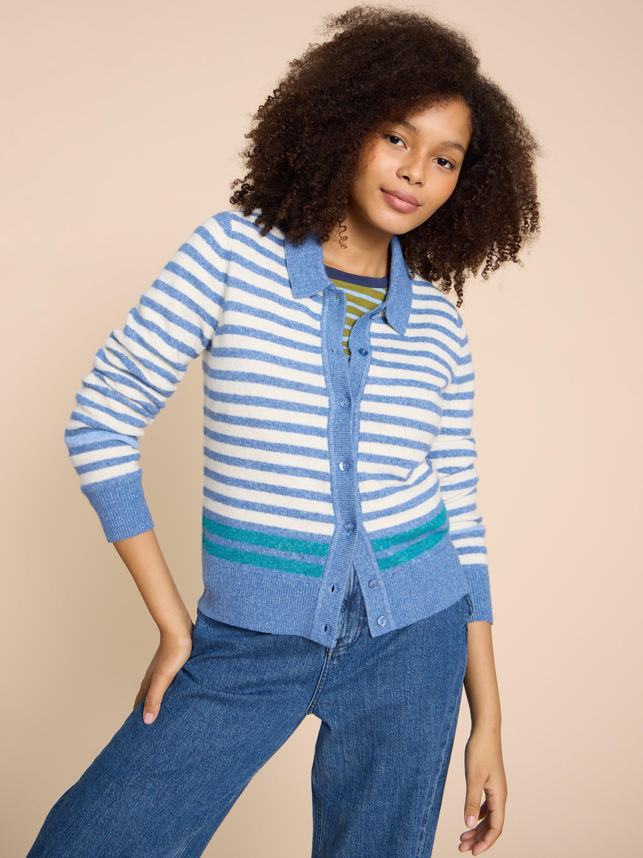 Blue white 2025 striped cardigan