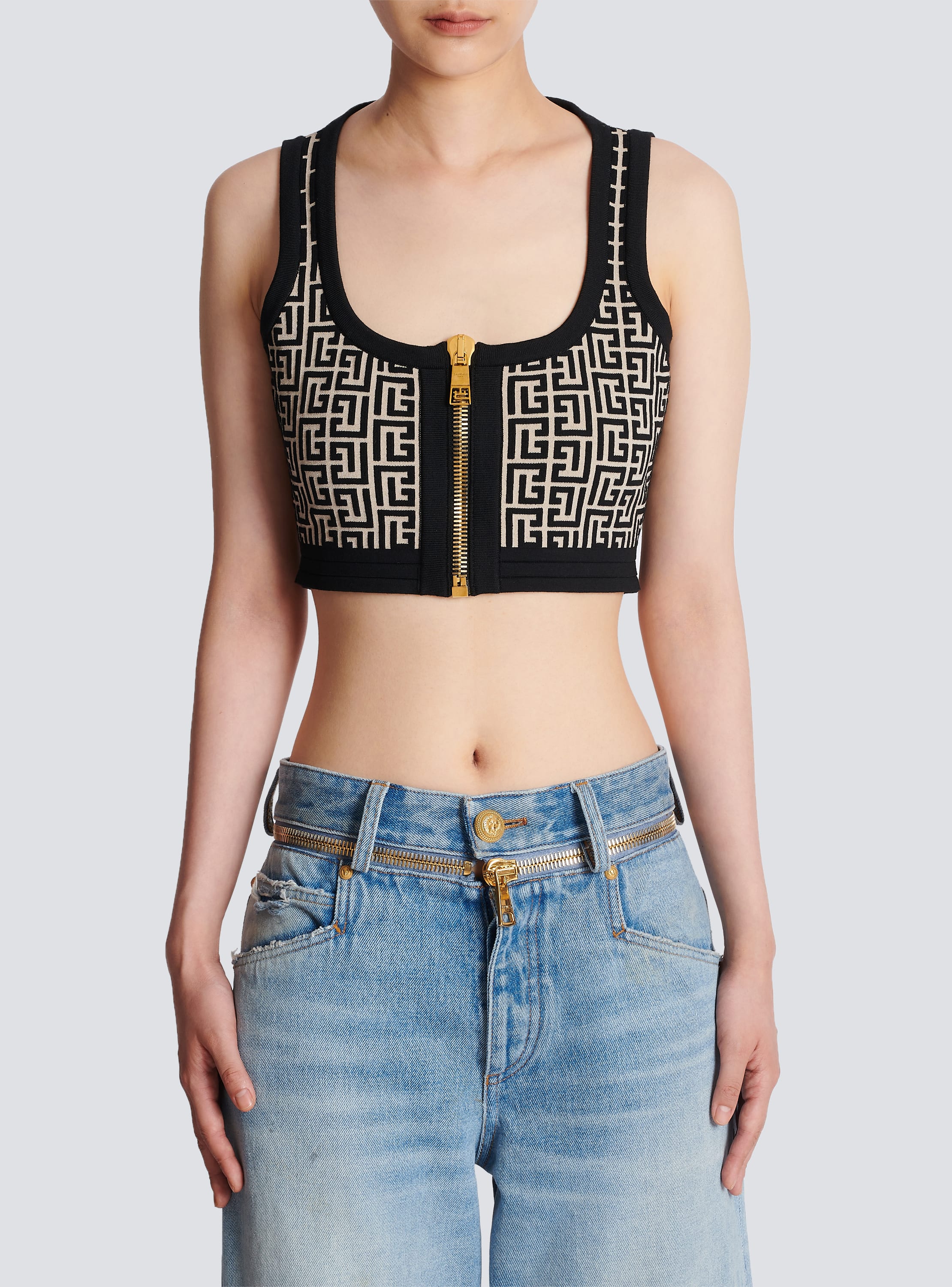 Knit balmain 2025 logo crop top