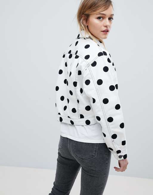 White polka 2025 dot denim jacket